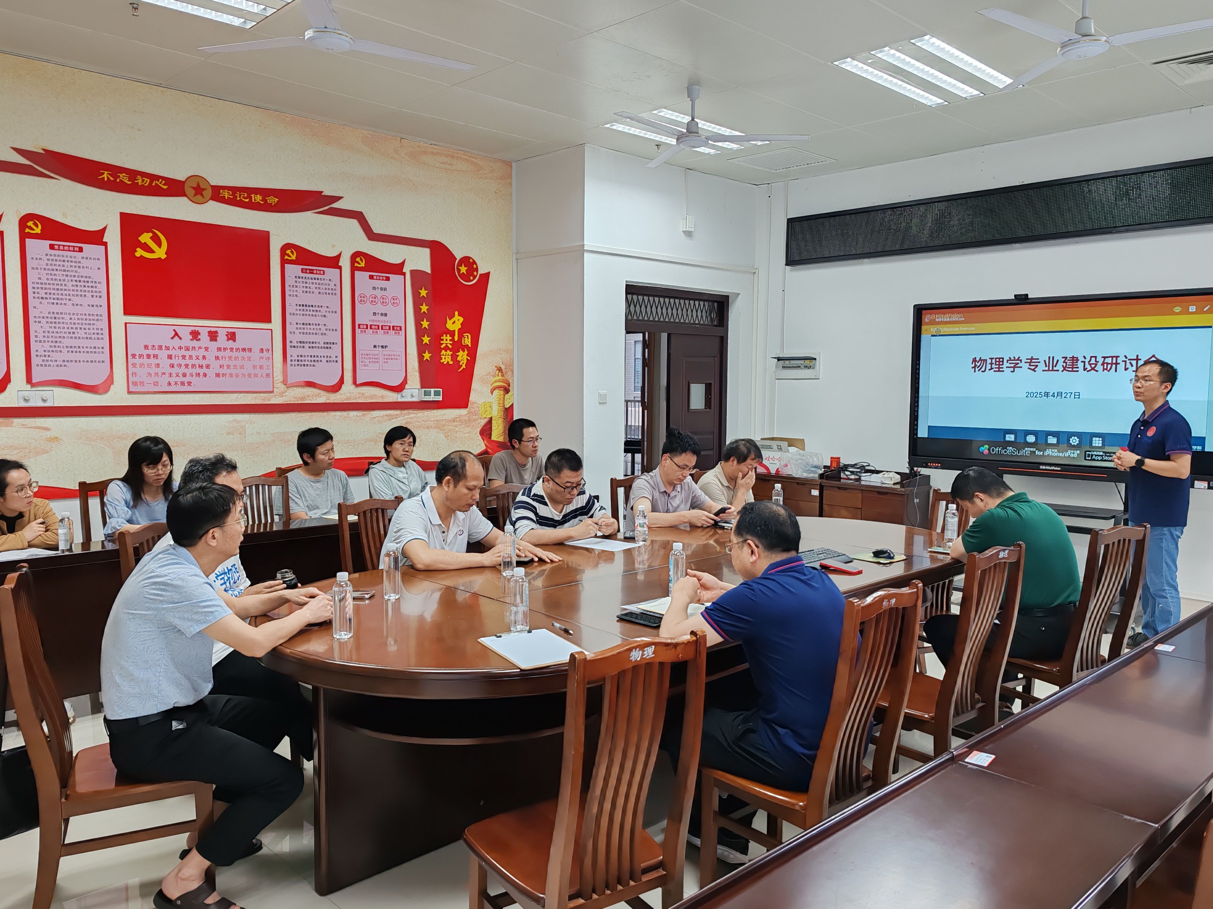 2025年4月27日下午,为落实《教育强国建设规划纲要(2024—2035年)》要求,提升物理学专业本科教学质量,我院物理系在物理楼D207召开物理学专业建设规划研讨会。会议聚焦专业长远发展,旨在借学校特色、专业优势与倍增计划资源,推动专业建设再上新台阶。物理系主任梁毅主持会议,副院长林达斌参加会议。