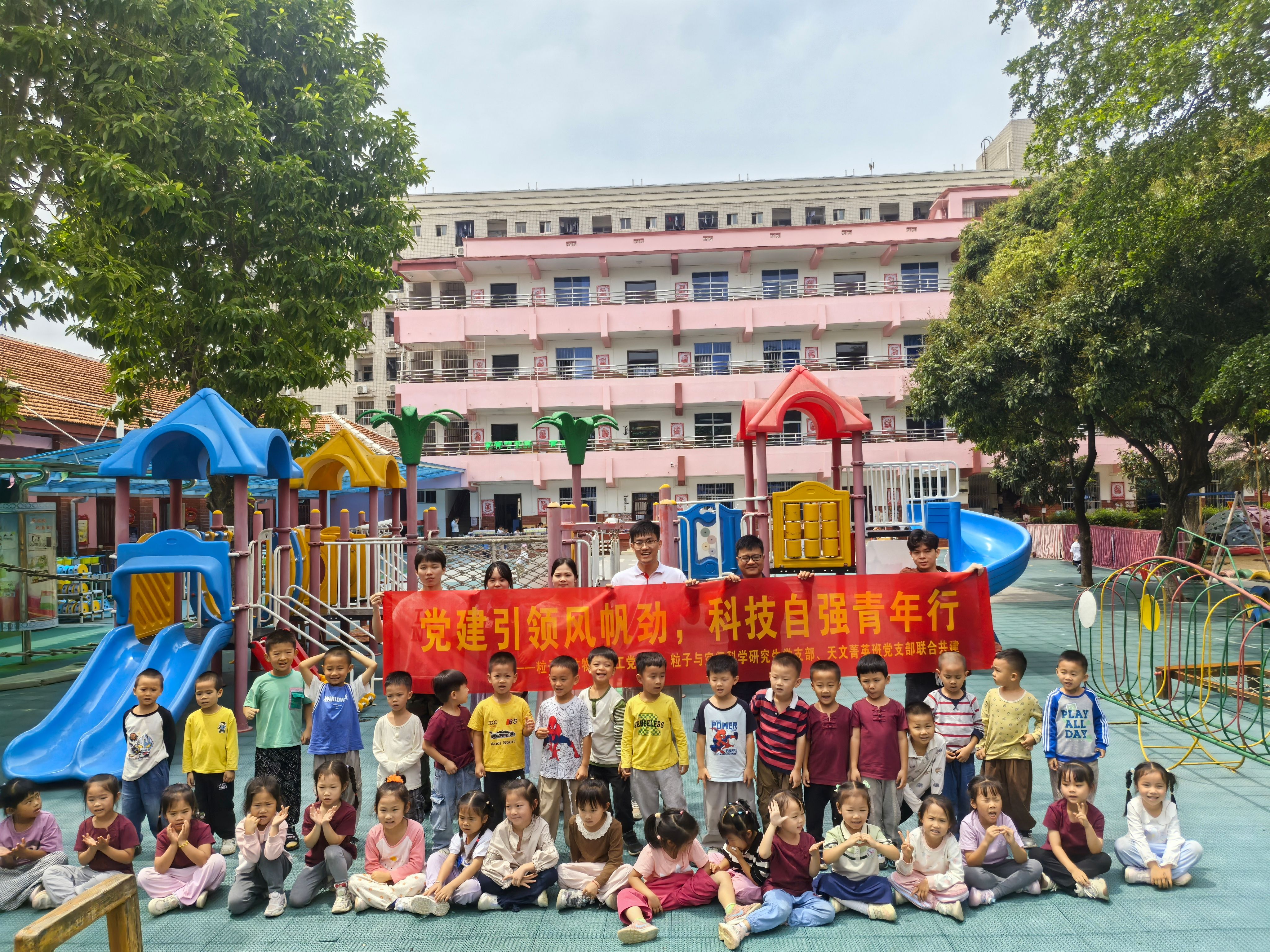 粒子天体物理教工党支部、粒子与空间科学研究生党支部与天文菁英班党支部共同走进广西大学第一幼儿园,开展“党建引领风帆劲,科技自强青年行”联合共建党日活动,为孩子们带来一场别开生面的科学启蒙之旅。