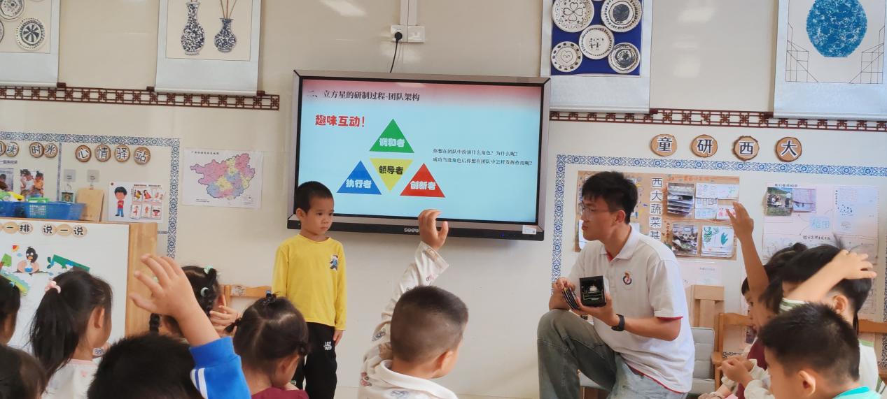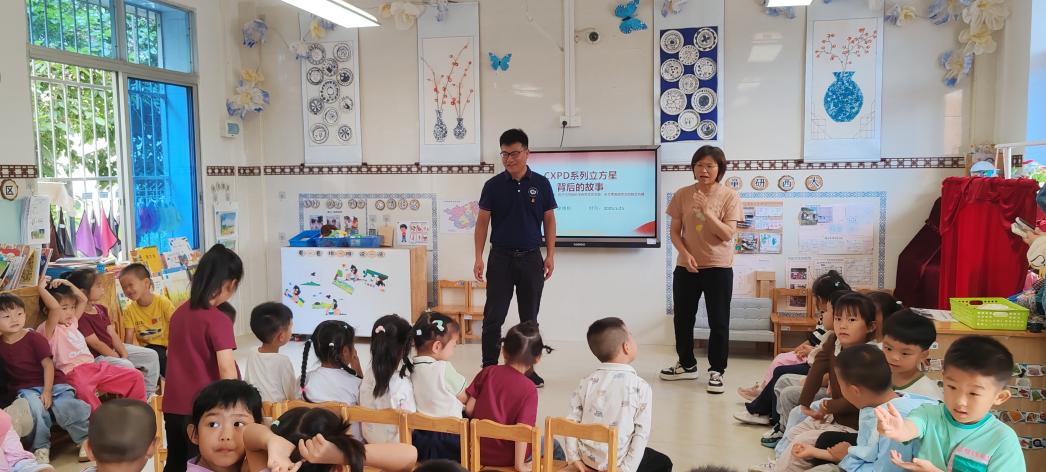 粒子与空间科学研究生党支部成员结合自身科研事迹,向孩子们讲解了CXPD立方星的建造过程。从设计、研发到组装,每一个环节都离不开团队成员的分工协作,让孩子们明白物理研究对科技发展的重要意义,也深刻体会到团队合作在科学研究和实际工作中的重要作用,同时感受到科技进步对生活的巨大影响。