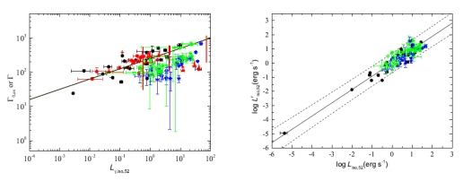 喷流洛伦兹因子可以基于瞬时辐射阶段双光子湮灭成正负电子对所造成的能谱高能截断来计算。以往的研究往往只关注伽马暴进程中特定阶段的洛伦兹因子,喷流洛伦兹因子在伽马暴进程中的演化并没有被关注和研究。研究小组基于费米卫星所观测到的伽马暴瞬时辐射数据,寻找具有高能截断能谱特征的伽马暴脉冲,并拟合光变和能谱计算对应于不同脉冲的喷流洛伦兹因子。他们得到9个伽马暴,每个伽马暴均有2个或以上脉冲具有高能截断能谱特征,估计了这些暴不同脉冲的喷流洛伦兹因子或上限,发现大部分伽马暴的喷流洛伦兹在一定范围内波动,并没有表现出特定的演化趋势;GRB 130821A、GRB 160509A和GRB 160625B的喷流洛伦兹因子随时间增加。我们也研究了样本脉冲的Liso、Ep,z和洛伦兹因子三者之间的关系,相关关系与前人研究结果一致。研究工作论文被《天体物理学杂志》(The Astrophysical Journal)接收发表。