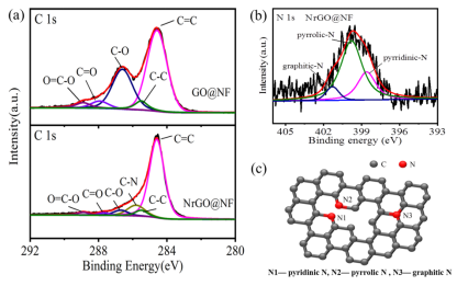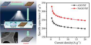 该工作提出光辅助碳酸氢铵热解并诱导快速还原氧化石墨烯和氮掺杂的一种简单而环保的策略,探讨了氧化石墨烯光还原机理和氮掺杂机理。与无氮掺杂的石墨烯相比,氮掺杂的石墨烯表现出优异的超级电容性能,其比电容高达328.85 F/g,10000次循环后电容保持率为96.1%。该成果为快速制备高性能石墨烯电极材料提供参考,推动了氮掺杂石墨烯在超级电容器领域的应用。